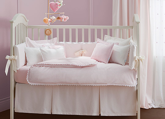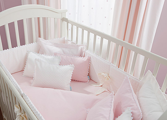 - For a vibrant effect, you can match the colour of the crib bumper pad with the polka dot or stripe colour. Conversely, a cream bumper pad will soften the ambiance.