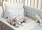 - Avec ses motifs à carreaux en tons bleu et café, le tissu dominant s’accorde naturellement avec un vichy café ou un velours côtelé uni un peu plus foncé.