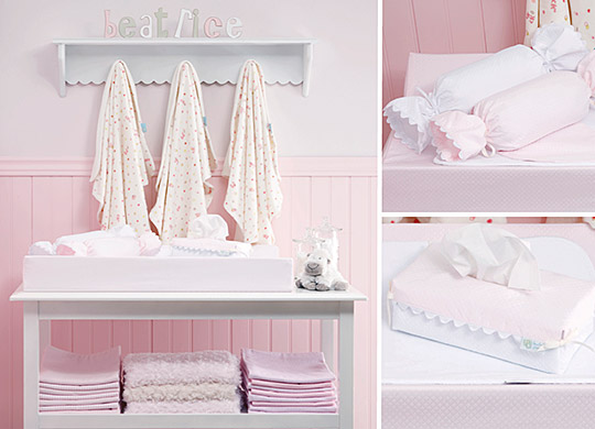 - Proposée en dominante rose ou bleu, cette collection se décline aussi en version neutre, tout blanc ou crème. Personnalisez votre agencement : la jupe de lit, les bordures, la housse de couette, le petit cache-oreiller existent dans chaque couleur.